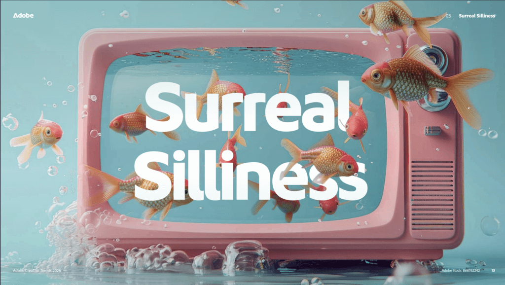 超現實趣味(Surreal Silliness)放任 AI 扭曲物理、重塑文化,創造怪誕喜悅,成為逃避現實的視覺語言。 VICE 報導,68% 全球年輕人尋求幽默內容解壓,Nano Banana 或 Firefly 譽為「最純粹創意」,Kantar 數據顯示趣味品牌擅長建構未來需求。 Nutter Butter TikTok 系列獲 2025 AdAge 創意獎,證明 Gen Z 愛此風格。