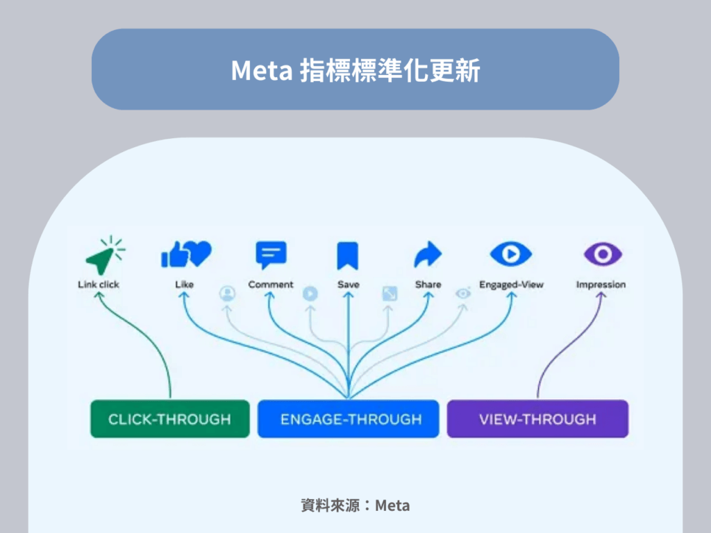 ① 從封閉走向開放: 過去 Meta 習慣使用其獨有的指標定義,這雖然展現了其生態系的獨特性,卻也增加了廣告主在進行跨平台媒體配置時的比較難度。透過這次更新,指標的定義將更符合業界通用的規範,幫助廣告主更直觀地評估每投入一塊錢產生的實質效能。
