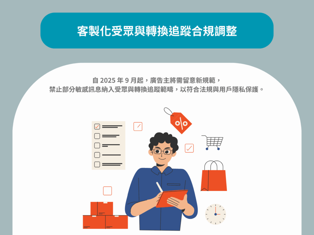 近期 Meta 針對客製化受眾(Custom Audiences)與自定義轉換(Custom Conversions)強化資訊安全和規範。自 2025 年 9 月起,廣告主將需留意新規範,禁止部分敏感訊息納入受眾與轉換追蹤範疇,以符合法規與用戶隱私保護。API 同步升級,方便品牌自動化管理合規需求。