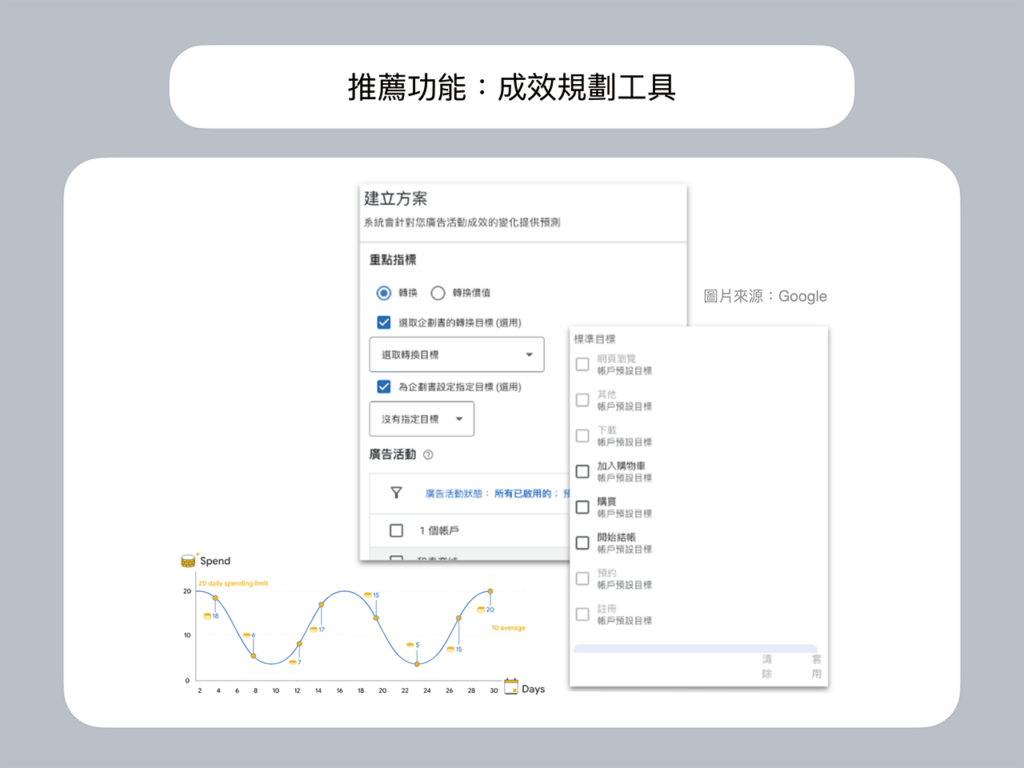 🌟 推薦功能:成效規劃工具選取特定轉換目標以預測轉換次數